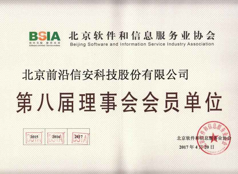 第八届软件与信息服务业协会证书